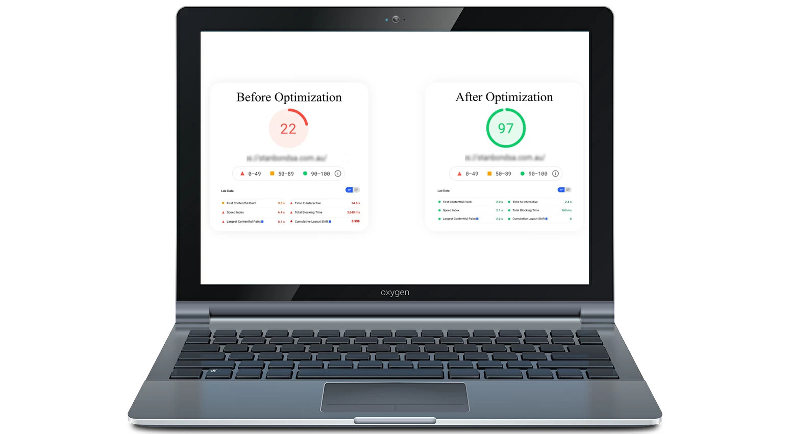 Here are our recently optimized Core Web Vitals scores.