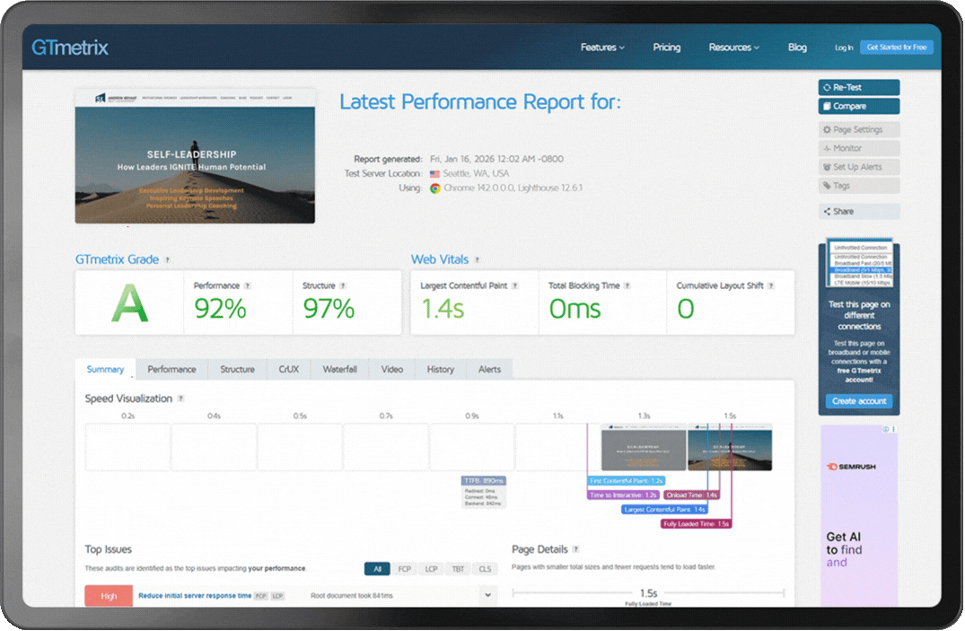 The W3SpeedUp service enables duda website speed optimization to reach Grade A performance on GTmetrix. Our Duda speed optimization approach focuses on meaningful improvements that reflect real user experience—not just test scores.
